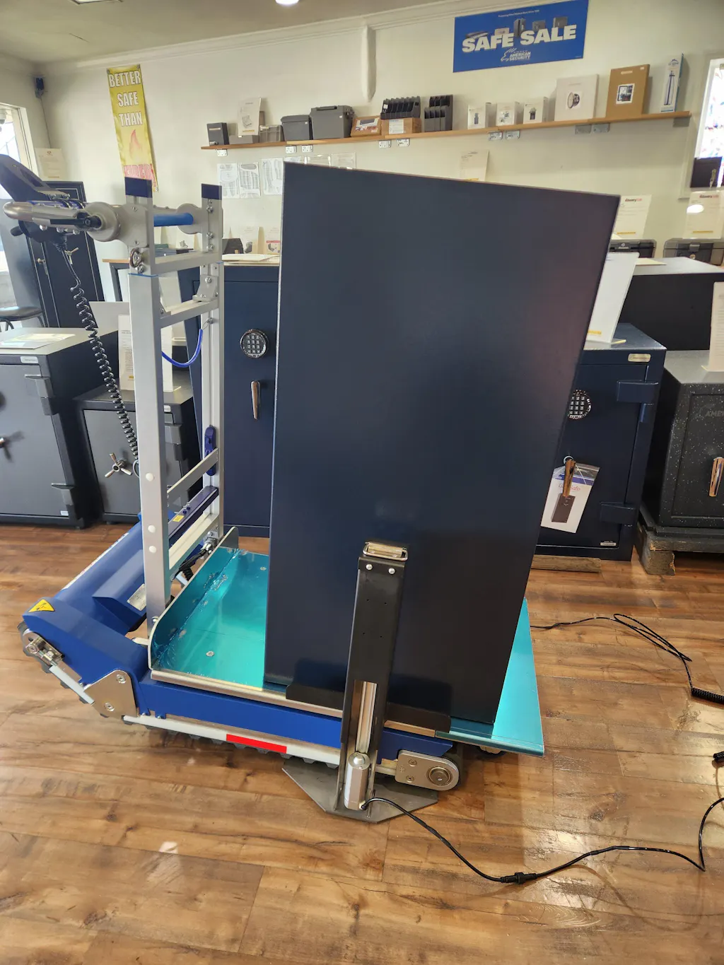 I purchased the stair climber and mini lifter for my safe moving business to help me and my team deliver safes. Many clients have stairs that make moving safes up and down difficult and hard on our backs. So far, the stair climber seems to be well-built and was able to handle moving a 500lb safe up 3 flights of stairs with landings and turns easily and with limited physical strength needed. I thought it was a little slow going up stairs, but with a 500lb safe, better to go slow and easy then rush the lift up. I do recommend buying a spare battery if you are also buying the mini lifter with it as you will have to swap the battery from the climber and lifter as you are moving between equipment.