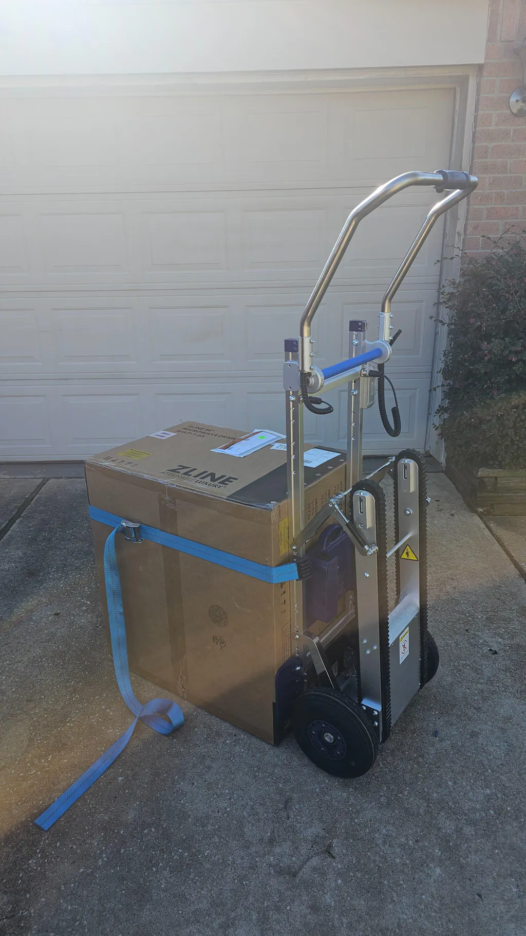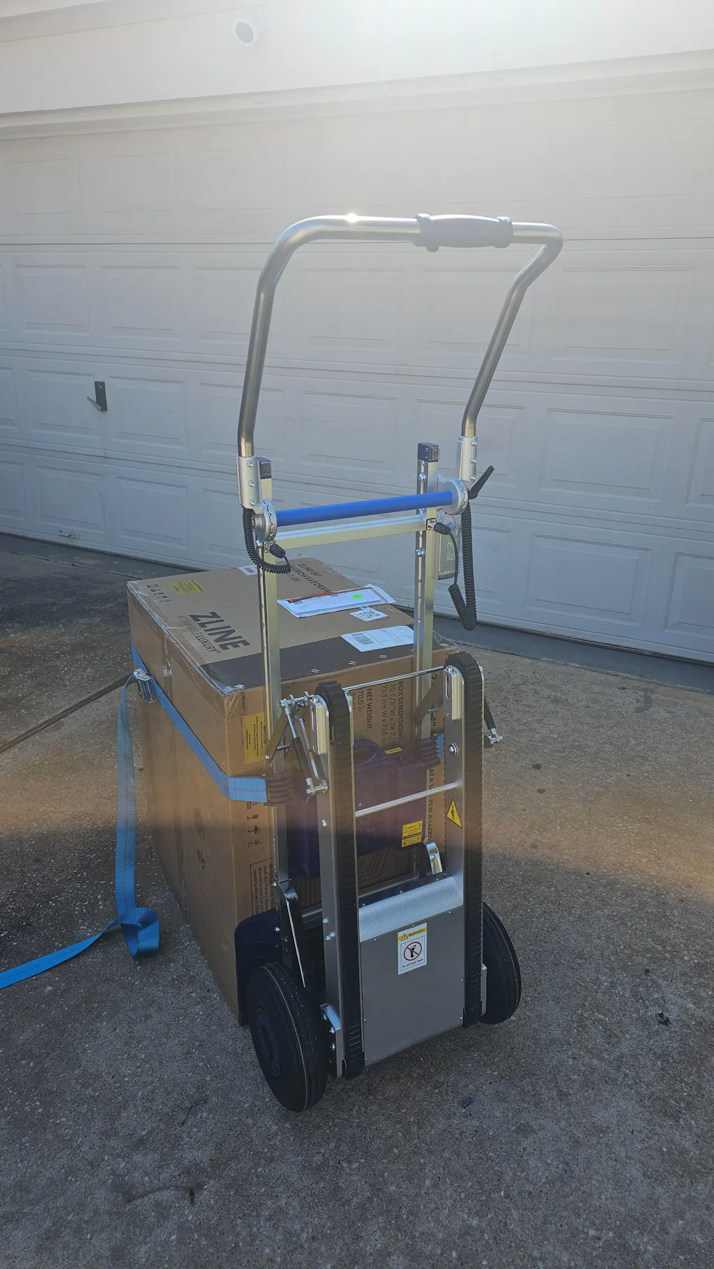 I had a full size refrigerator and a upright freezer to bring up a narrow basement stair well. The Powered Stair Climbing Hand Truck took each of them up the concrete stairs with ease, by me self!