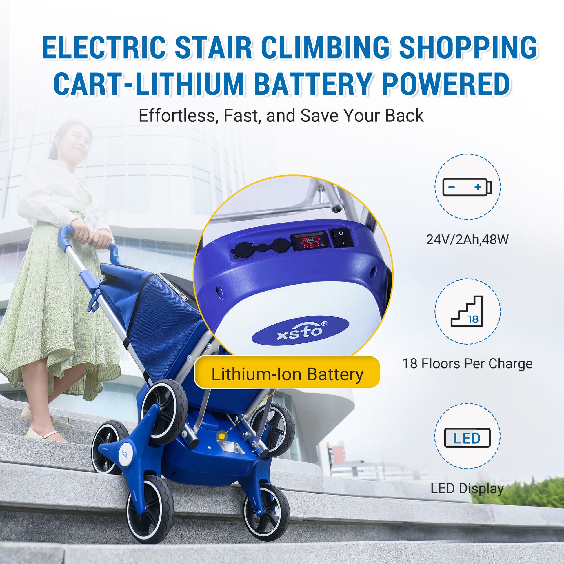 • XSTO Robby electric folding stair climber trolley cart perfectly balances lightweight capability with durability and features 6-wheel design, Point touch operation, Adjustable Mode and Speed gives you complete control over your cart's performance, ensuring that you can easily navigate upstairs and downstairs.